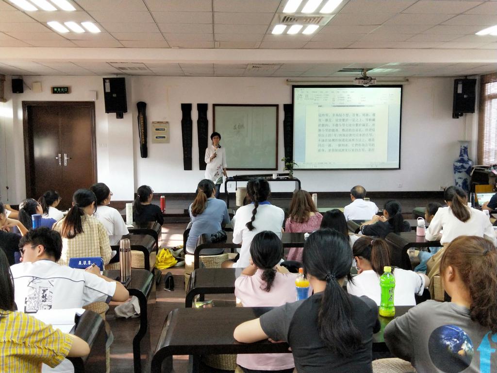 院长黄金明教授及泠音琴社指导教师参加了研讨。黄金明院长首先对陈雯博士的到来表示欢迎。随后,陈雯采用图文结合的方式让大家从“器物”层面了解古琴,并与在场同学、老师进行了深入交流。稍事休息后,陈雯继续作关于《溪山琴况》的专题讲座,她详细讲述了《溪山琴况》的背景知识,详实阐释书中的“和”文化,并普及古琴诗词与典故,语言风趣幽默。最后,陈雯用一曲意蕴悠长的《良宵引》结束了本次讲座。