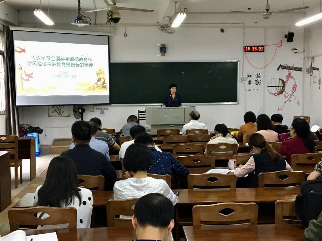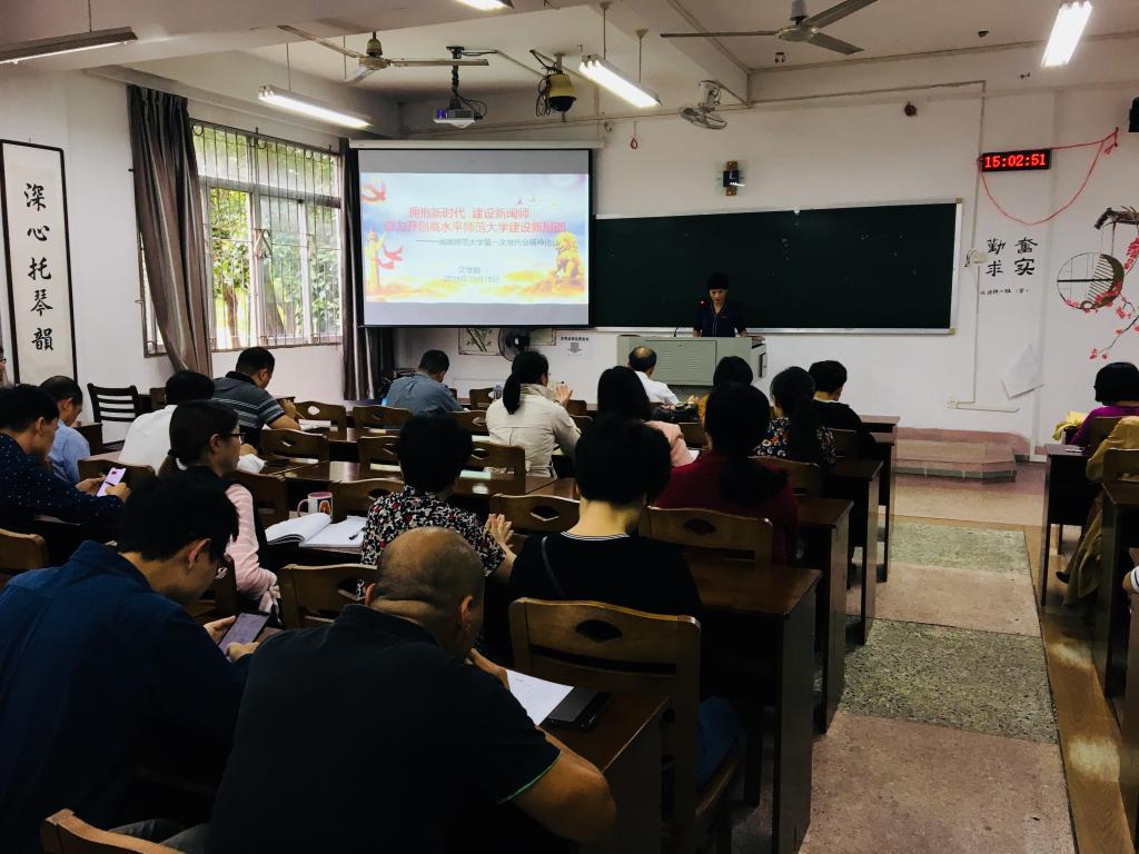 党委书记赵丽霞主持。会议向全体教师传达了闽南师范大学第一次党代会内容、全国科学道德教育和学风建设宣讲教育报告会精神,以及对校庆工作进行相关部署。