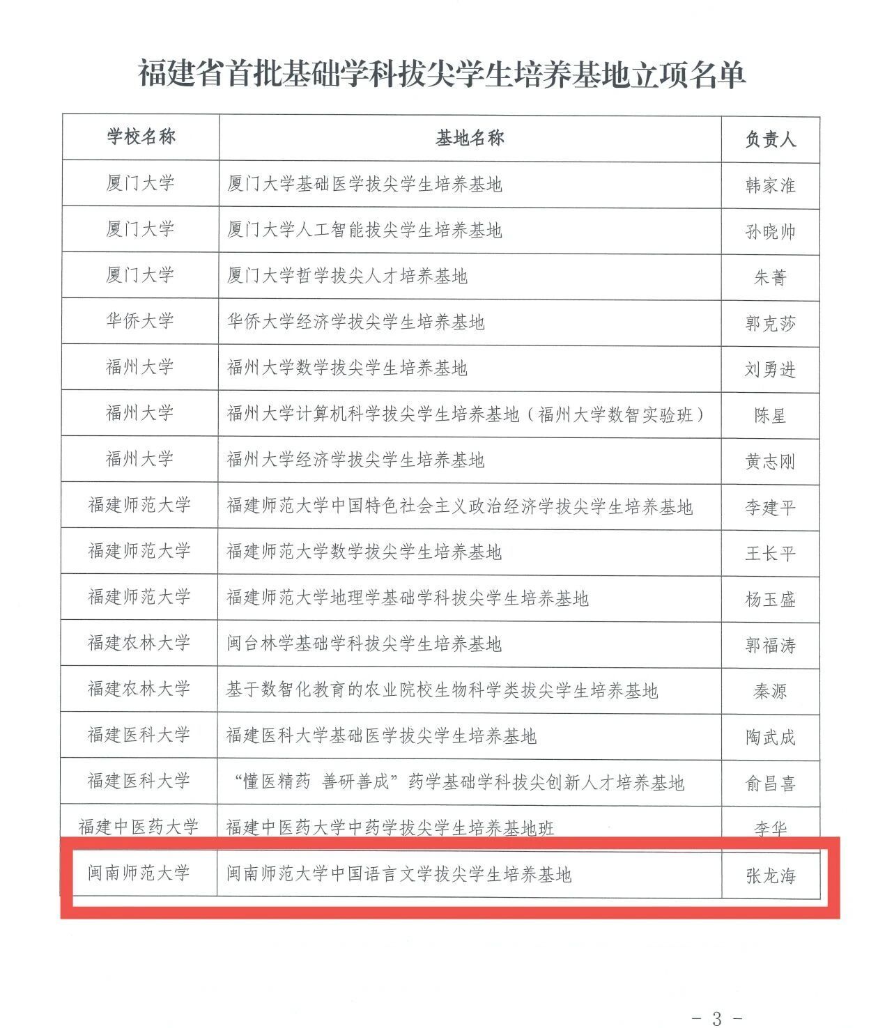日前,福建省教育厅公布首批基础学科拔尖学生培养基地立项名单,全省共确立16个基地。我校“中国语言文学拔尖学生培养基地”入选首批立项名单,标志着学校在基础学科拔尖人才培养方面取得重要突破。