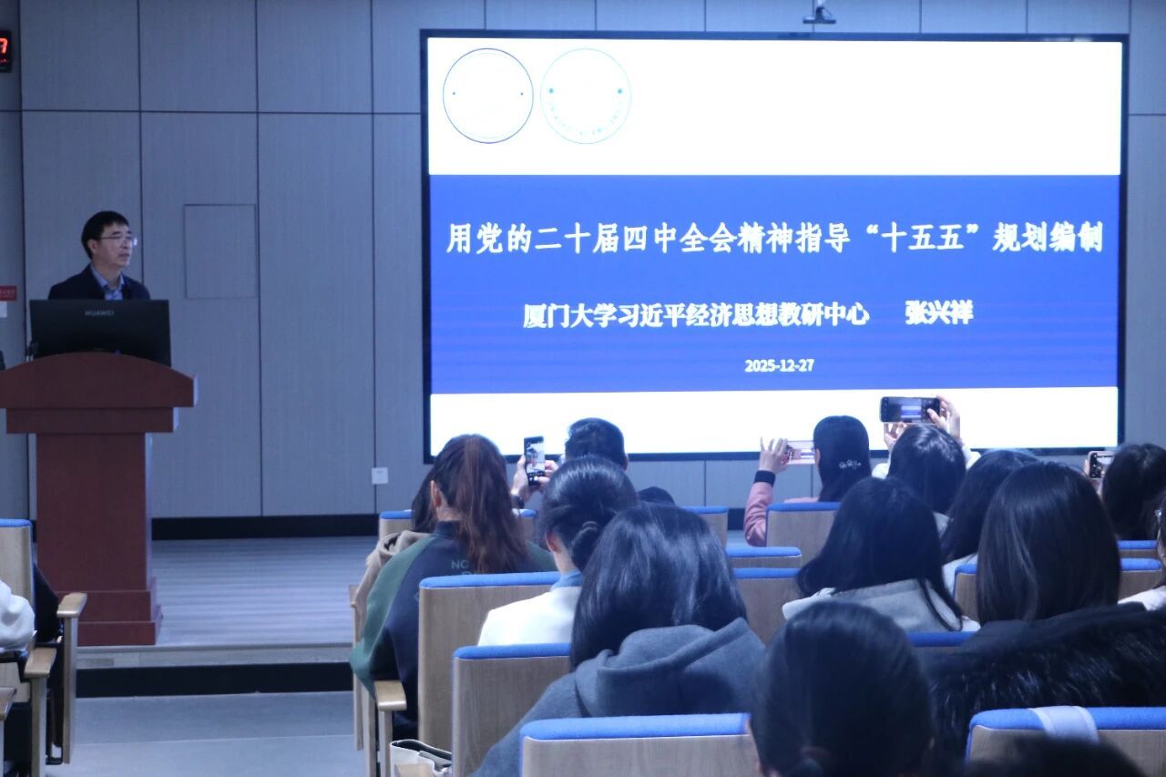 经济学系主任张兴祥教授作题为《用党的二十届四中全会精神指导“十五五”规划编制》的专题党课。