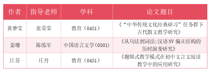 深耕学术、潜心育人的扎实成果。现将本次荣获省级优秀硕士学位论文的名单公布如下: