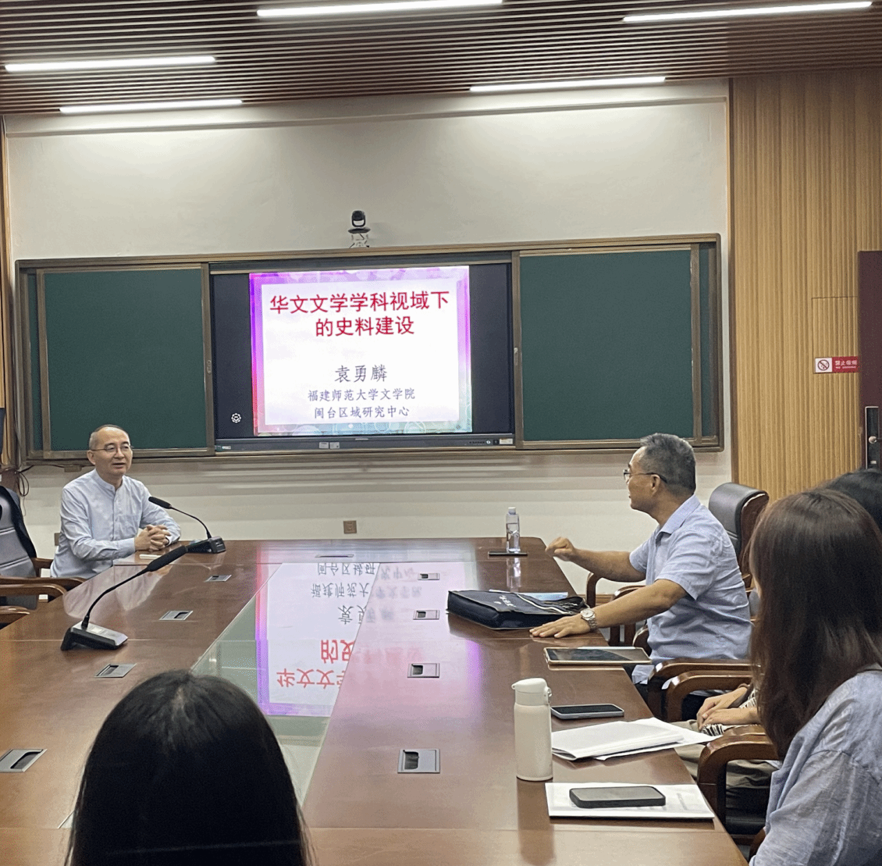 讲座伊始,袁勇麟指出,回顾中国大陆40多年来华文文学研究历程,虽然取得了一批阶段性的学术成果,但在整个学科建构中,史料的收集整理和建设工作却显得尤为薄弱。