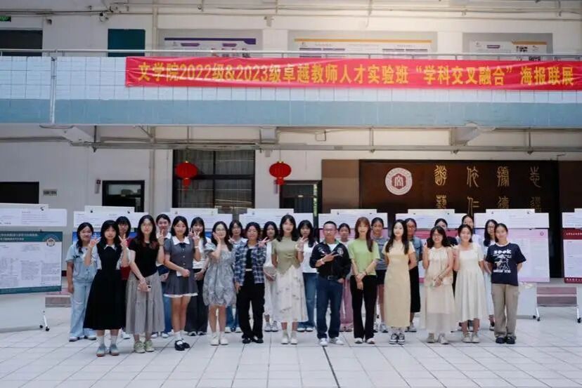 2023级卓越教师人才实验班在博东中庭举办“学科交叉融合”成果海报展。此次展览旨在探索多学科交叉融合的有效路径,既为学生搭建了学术成果展示与交流的平台,更着力激发大家的学术创新活力,以鲜活实践为营造校园良好学风注入新动能。